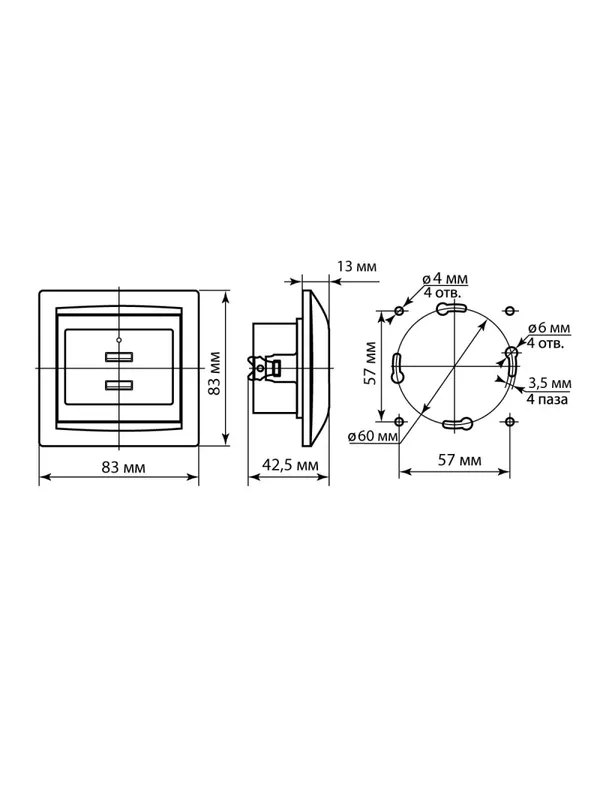 Розетка 2USB порт 2,1А 5В сл. кость «Лама» TDM