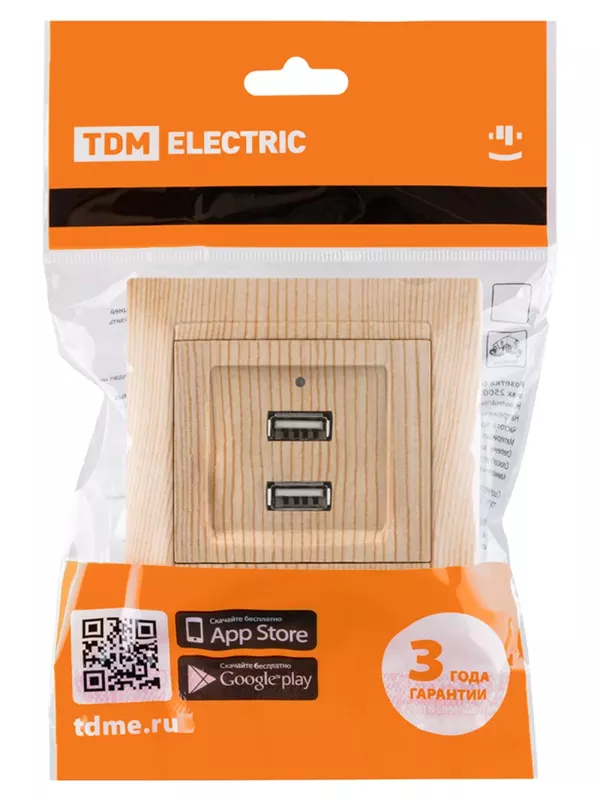/ Розетка 2USB порт 2,1А 5В сосна «Лама» TDM