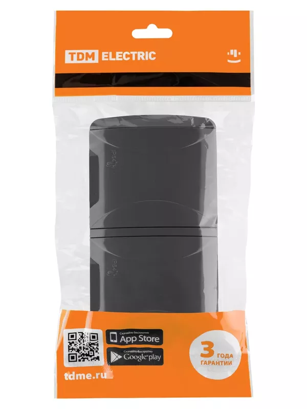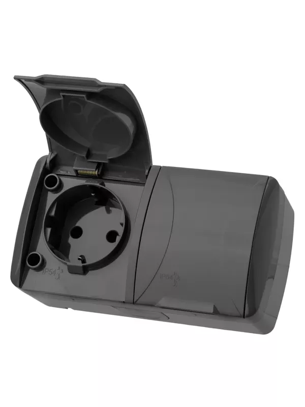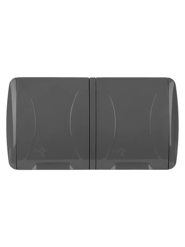 / Розетка двойная 2П+3 открытой установки IP54 16А с крышкой серая «Селигер» TDM