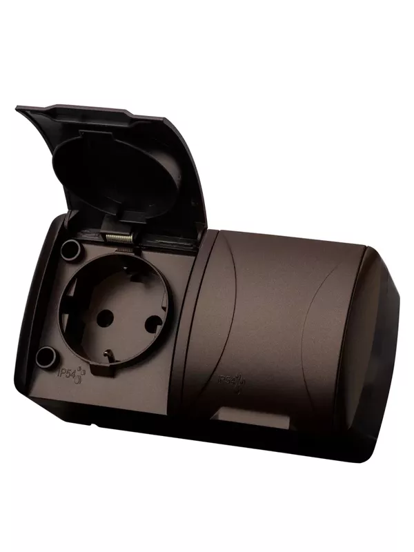 / Розетка двойная 2П+3 открытой установки IP54 16А с крышкой шоколад «Селигер» TDM