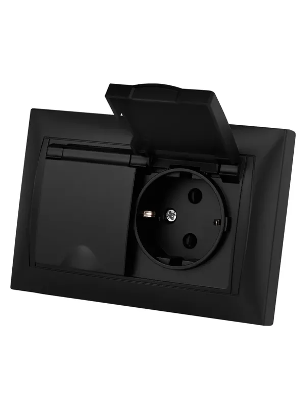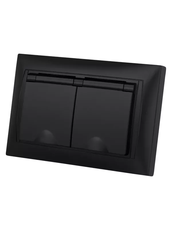 Розетка двойная 2П+З 16А 250В IP44 с защ. шт. с крышкой графит «Лама» TDM