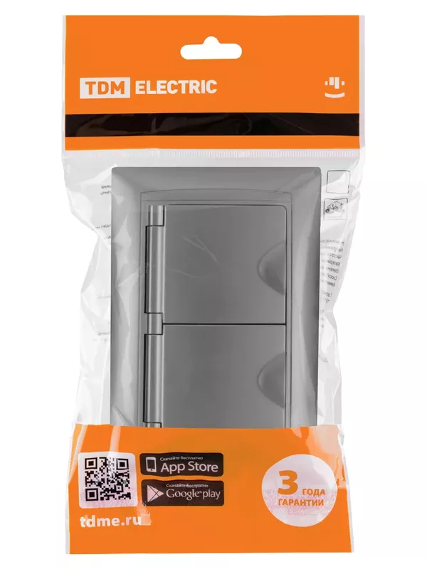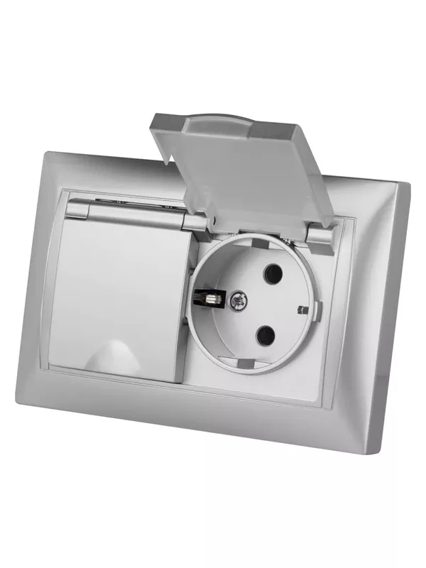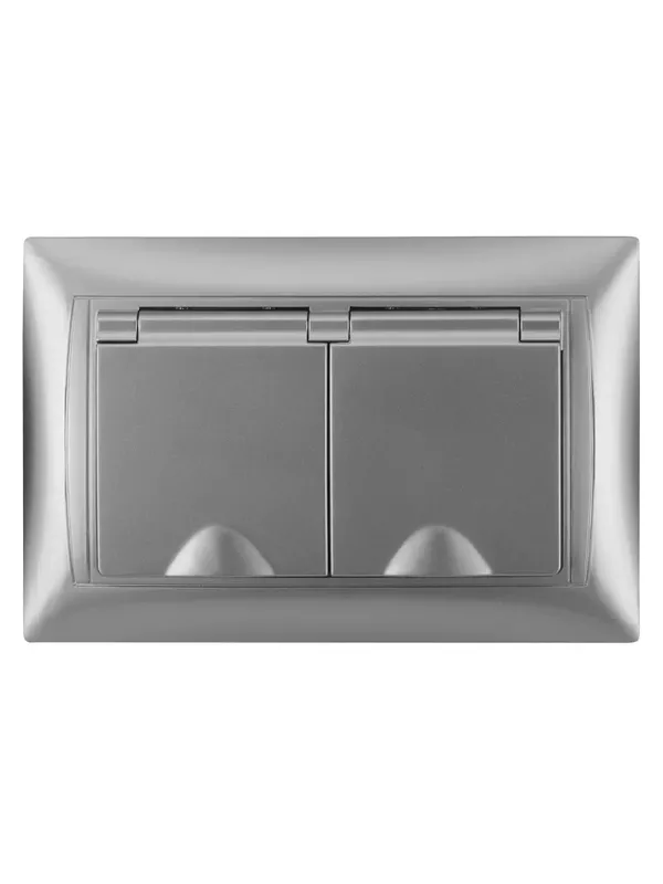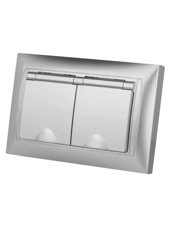 Розетка двойная 2П+З 16А 250В IP44 с защ. шт. с крышкой серебр. металлик «Лама» TDM