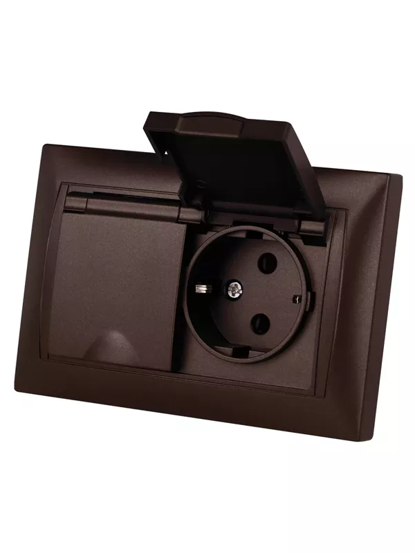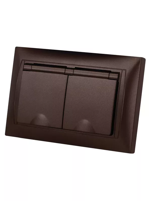 Розетка двойная 2П+З 16А 250В IP44 с защ. шт. с крышкой шоколад «Лама» TDM