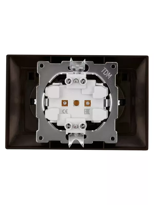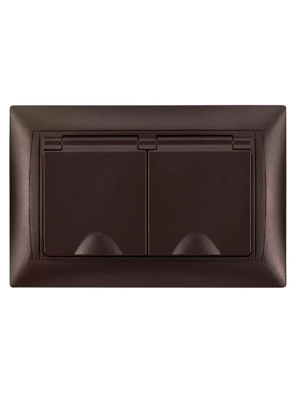 / Розетка двойная 2П+З 16А 250В IP44 с защ. шт. с крышкой шоколад «Лама» TDM