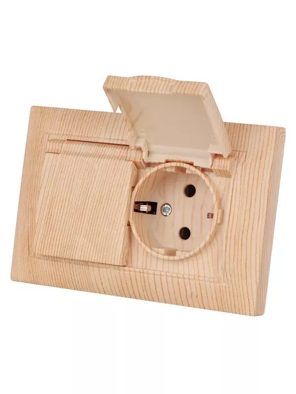 Розетка двойная 2П+З 16А 250В IP44 с защ. шт. с крышкой сосна «Лама» TDM