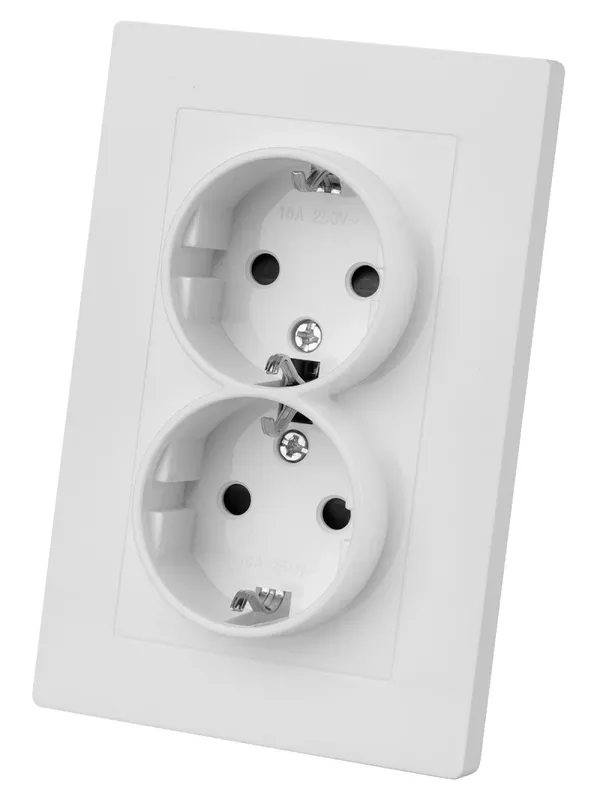 Розетка двойная 2П+З 16А 250В с защ. шт. белая «Сенеж» TDM