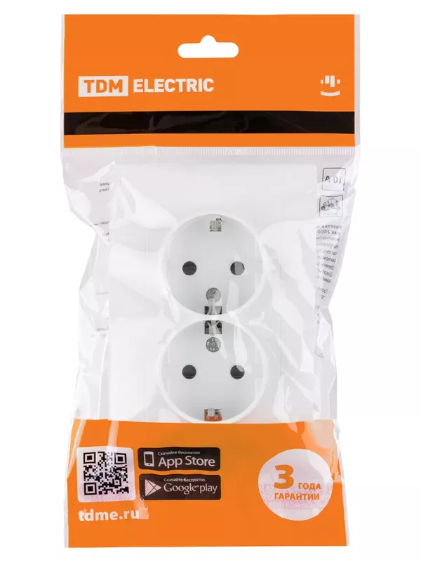 / Розетка двойная 2П+З 16А 250В с защ. шт. белая «Сенеж» TDM