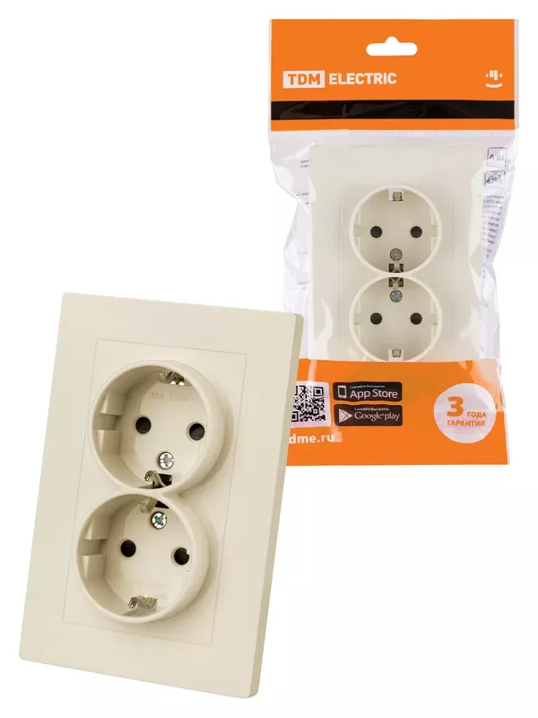 / Розетка двойная 2П+З 16А 250В с защ. шт. сл. кость «Сенеж» TDM