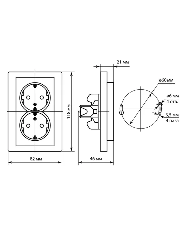 Розетка двойная 2П+З 16А 250В сл. кость «Сенеж» TDM