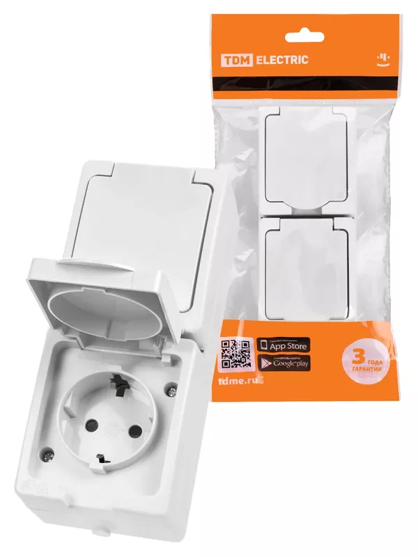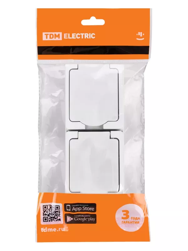 / Розетка двойная 2П+З (вертикальная) открытой установки IP54 16А белая «Вуокса» TDM