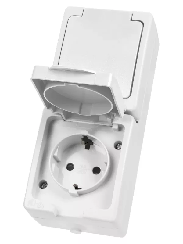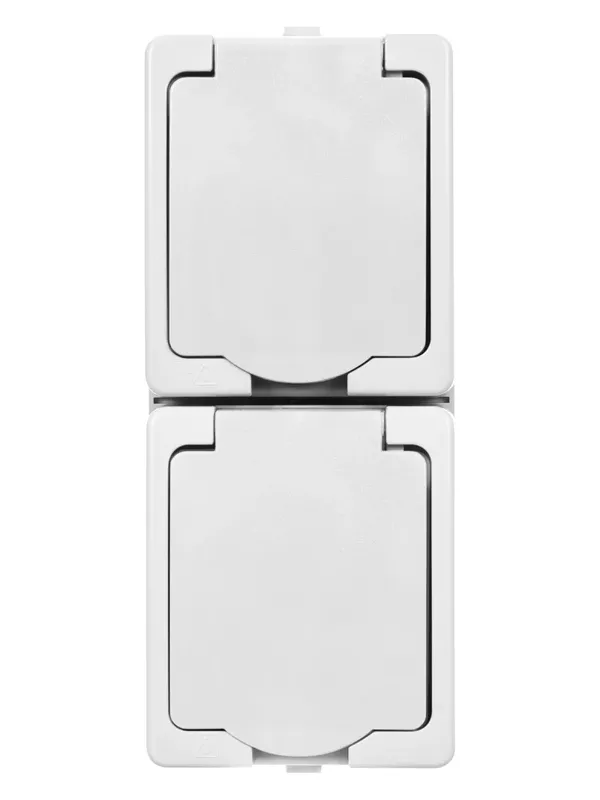 Розетка двойная 2П+З (вертикальная) открытой установки IP54 16А белая «Вуокса» TDM