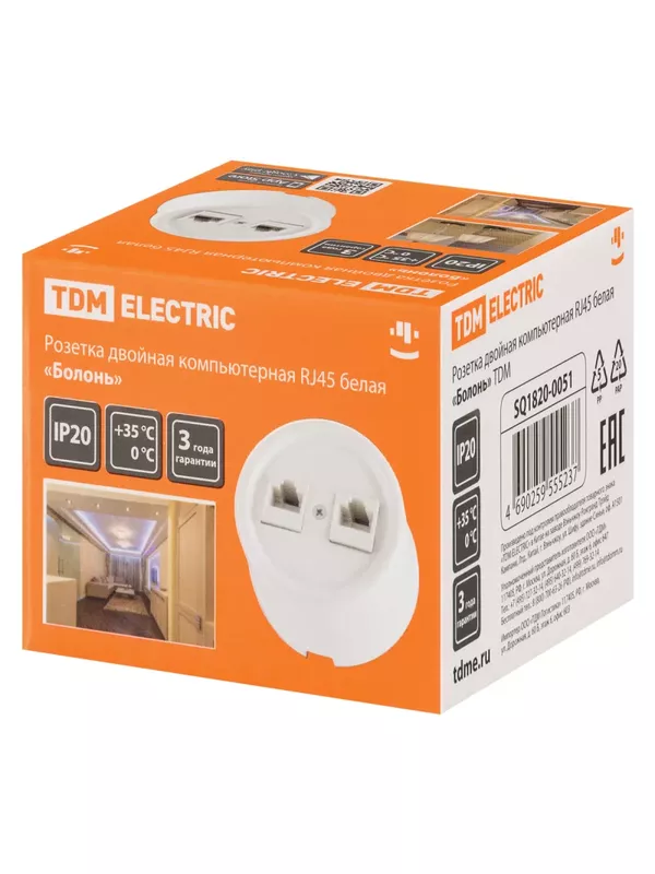 / Розетка двойная компьютерная RJ45 белая «Болонь» TDM
