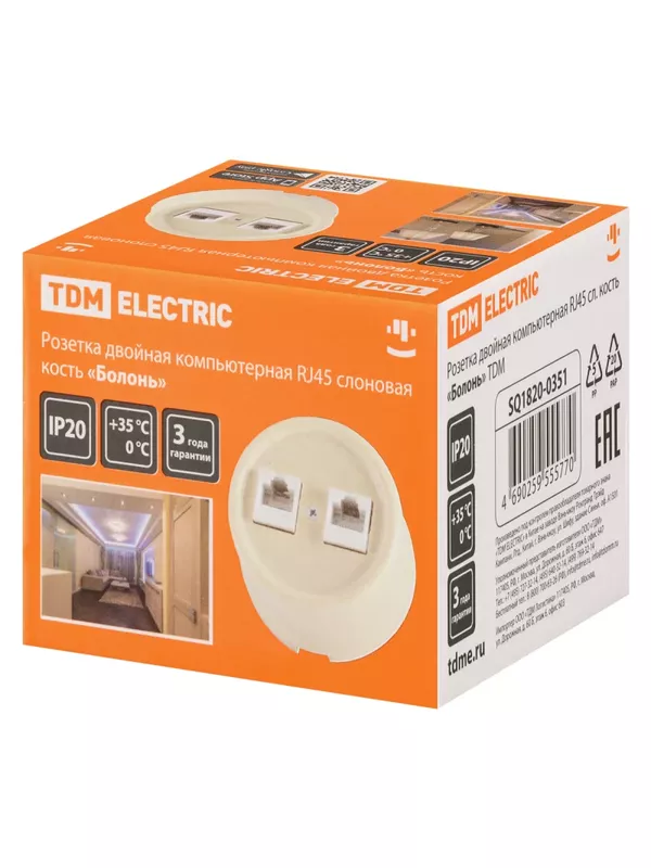 / Розетка двойная компьютерная RJ45 сл. кость «Болонь» TDM