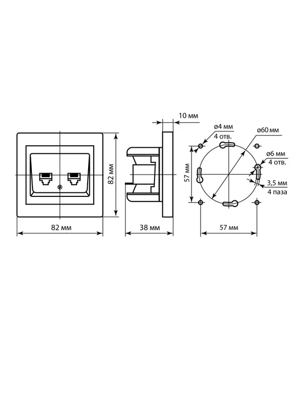 / Розетка двойная телефонная RJ11 белая «Сенеж» TDM