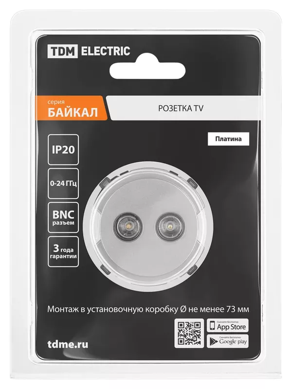 / Розетка двойная TV проходная платина, «Байкал» TDM