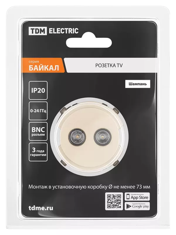 / Розетка двойная TV проходная шампань, «Байкал» TDM