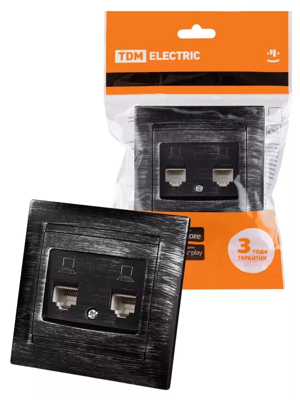 / Розетка компьютерная двойная RJ45 старинное серебро «Лама» TDM
