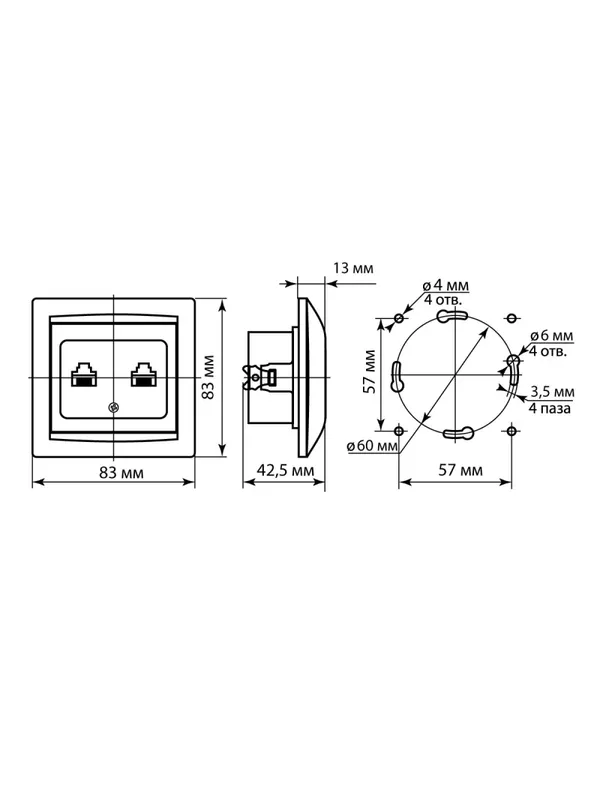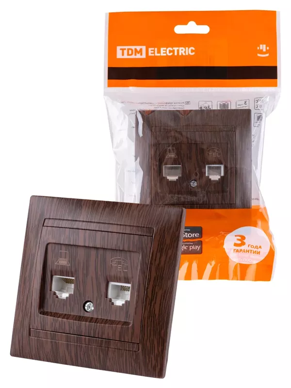 / Розетка телефонная RJ11 + компьютерная RJ45 венге «Лама» TDM
