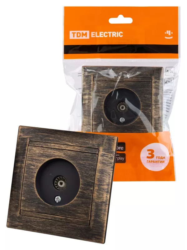 / Розетка телевизионная простая (0-2400МГц, «мама») старинная бронза «Лама» TDM