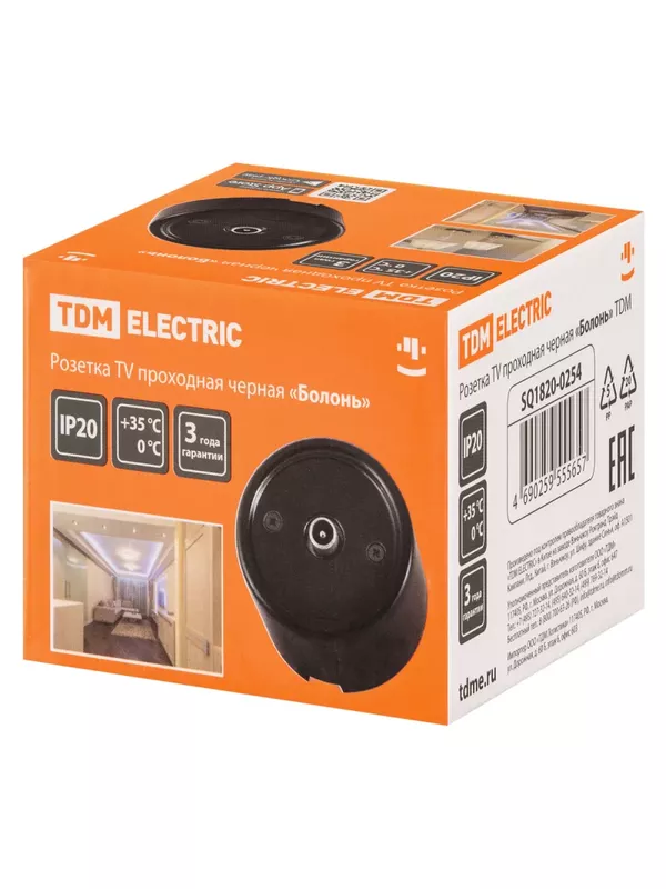 Вилка круглая плоская с кольцом белая 16А 250В TDM