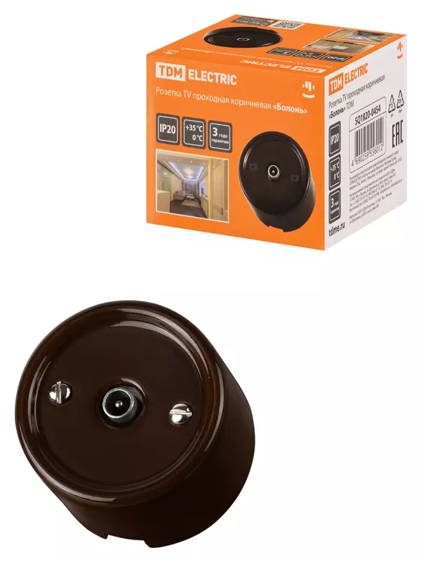 / Розетка TV проходная коричневая «Болонь» TDM