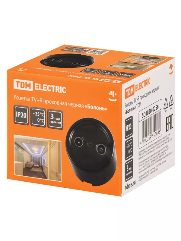 / Розетка TV+R проходная черная «Болонь» TDM
