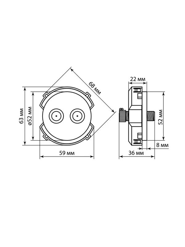 Розетка угловая двойная 2П открытой установки с з/ш IP20 250В 10А сл. кость «Ладога» TDM