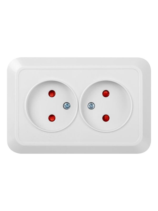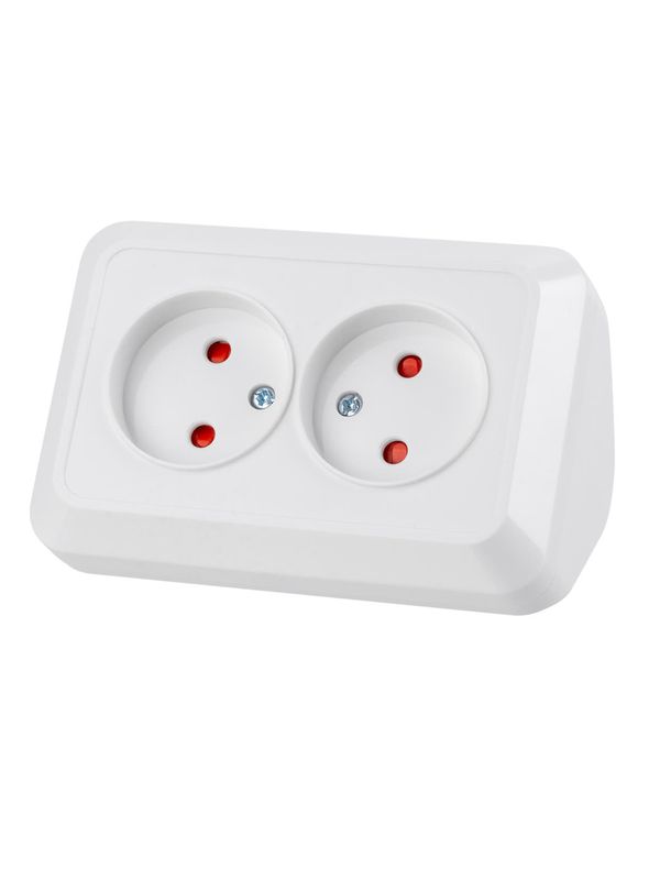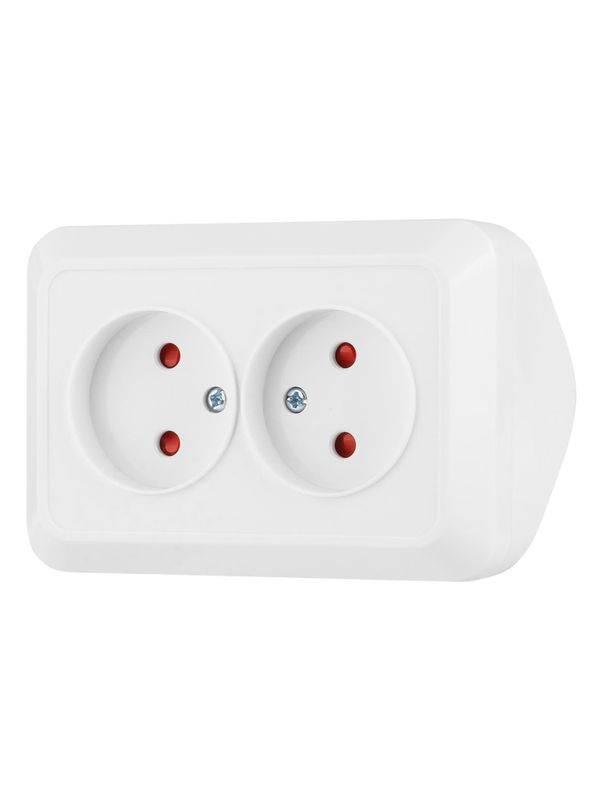 Розетка угловая двойная 2П открытой установки с з/ш IP20 250В 10А белая «Ладога» TDM