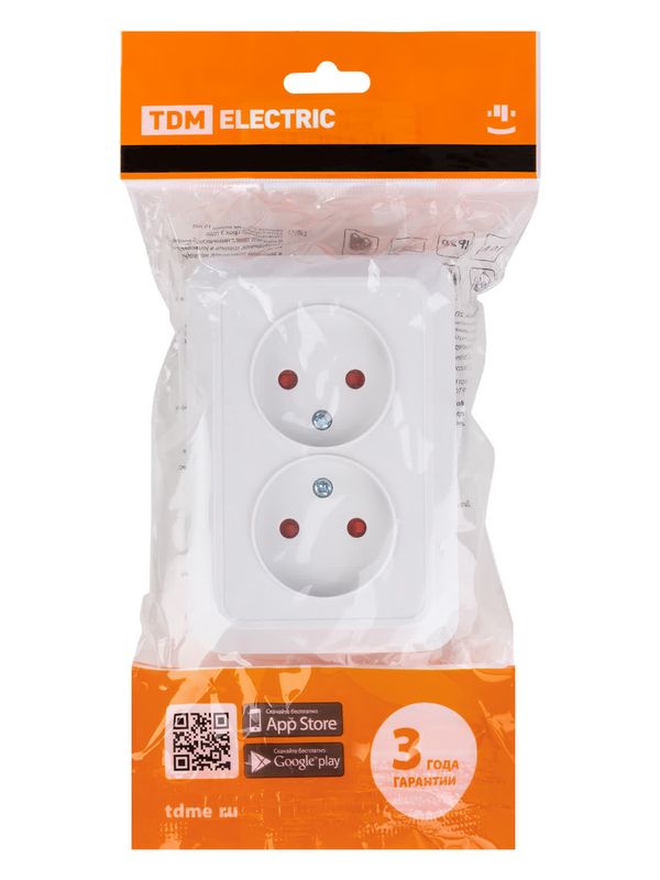 Розетка угловая двойная 2П+З открытой установки с з/ш IP20 250В 16А белая «Ладога» TDM