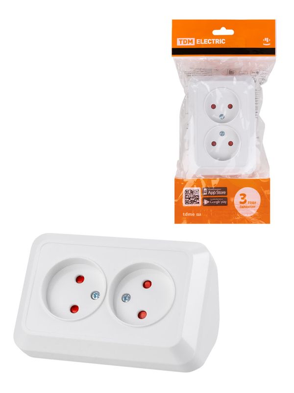 / Розетка угловая двойная 2П открытой установки с з/ш IP20 250В 10А белая «Ладога» TDM