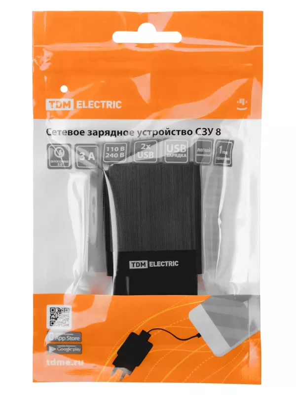 Сетевое зарядное устройство, СЗУ 8, Quick Charge 3.0, 3 А, 2 USB, черный, TDM