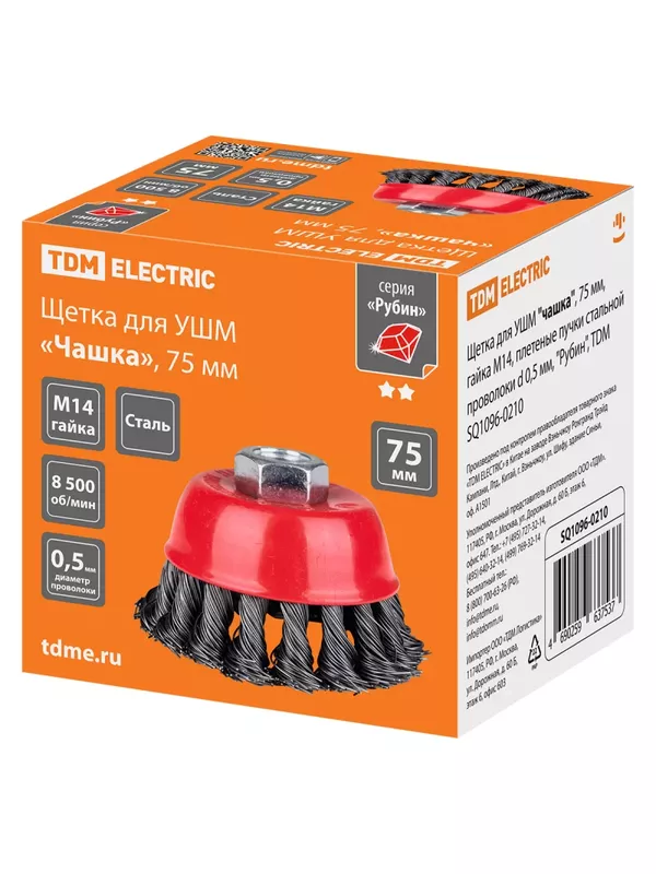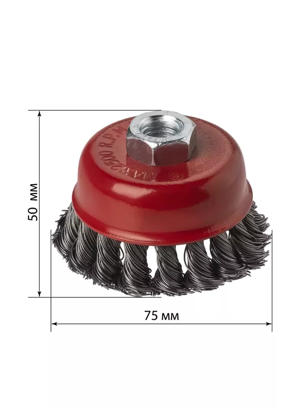 / Щетка для УШМ «чашка», 75 мм, гайка М14, плетеные пучки стальной проволоки d 0,5 мм, «Рубин», TDM
