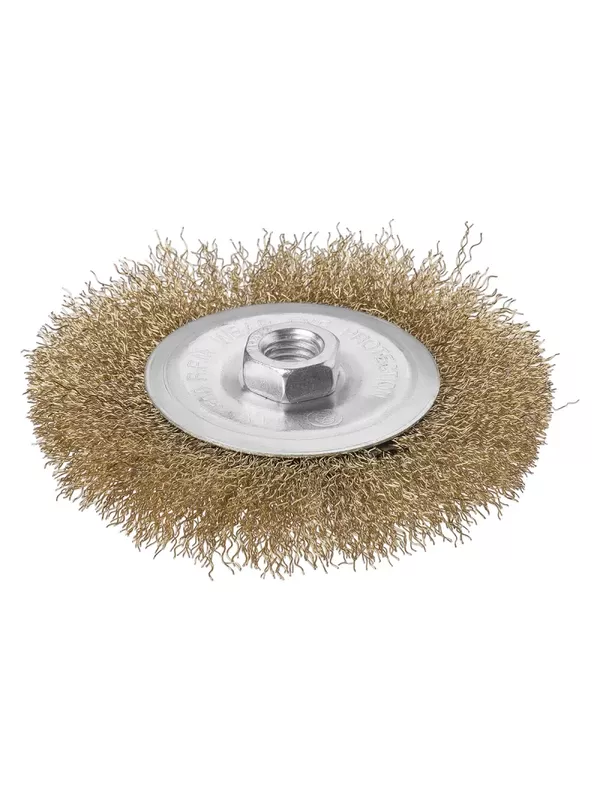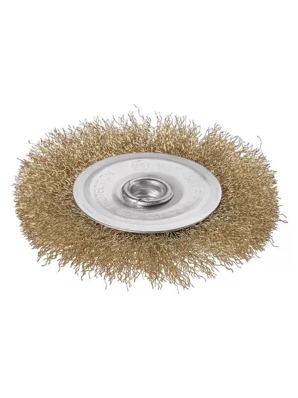 Щетка для УШМ «плоская», 125 мм, гайка М14, латунированная витая проволока d 0,3 мм, «Рубин», TDM