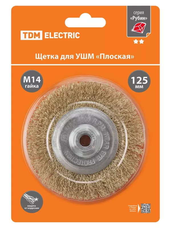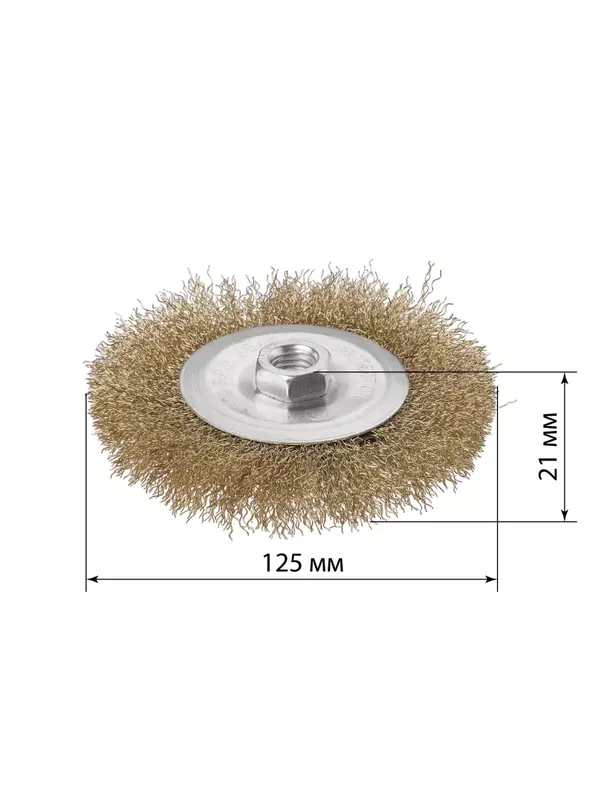 / Щетка для УШМ «плоская», 125 мм, гайка М14, латунированная витая проволока d 0,3 мм, «Рубин», TDM