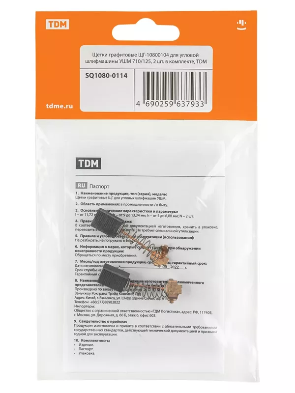 Щетки графитовые ЩГ-10800104 для угловой шлифмашины УШМ 710/125, 2 шт. в комплекте, TDM