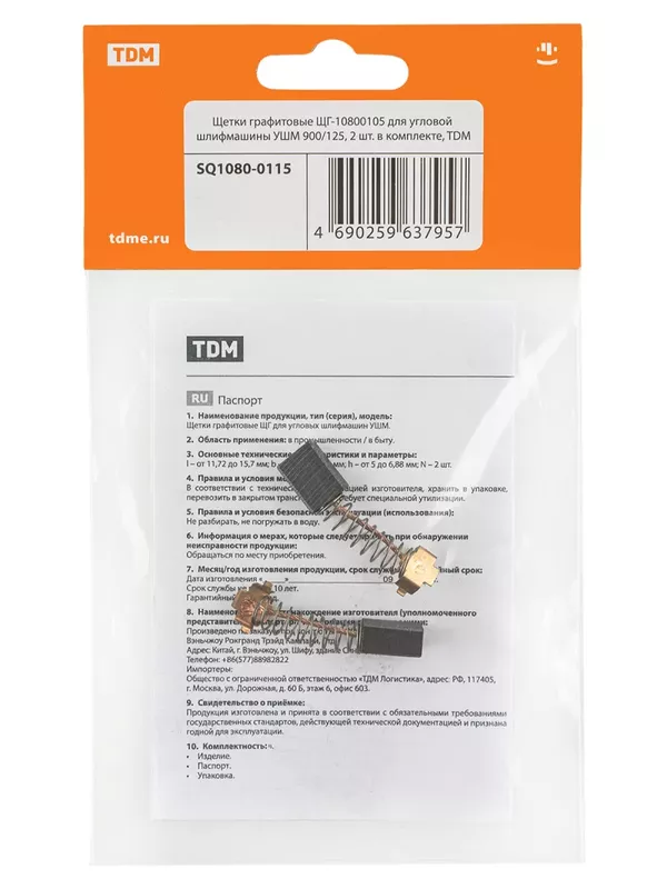 Щетки графитовые ЩГ-10800105 для угловой шлифмашины УШМ 900/125, 2 шт. в комплекте, TDM