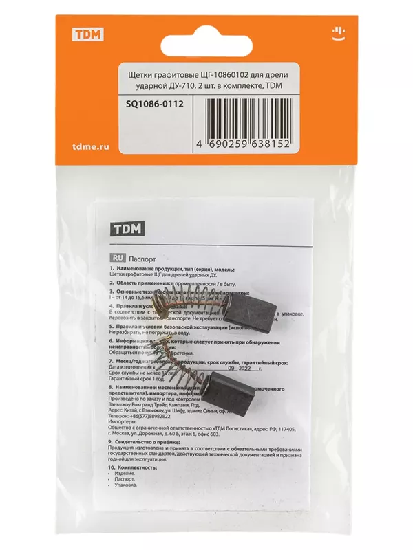 Щетки графитовые ЩГ-10860102 для дрели ударной ДУ-710, 2 шт. в комплекте, TDM