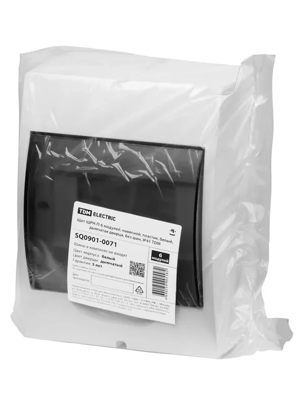 / Щит ЩРН-П-6 модулей, навесной, пластик, белый, дымчатая дверца, без шин, IP41 TDM