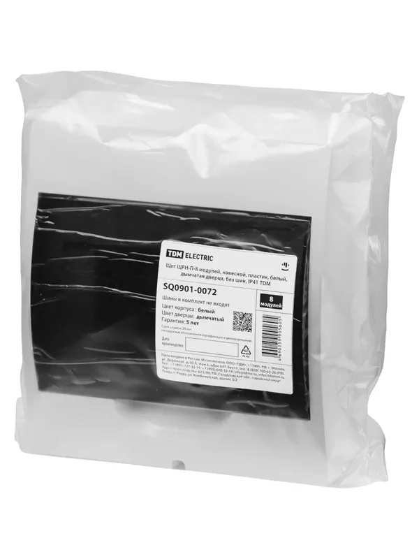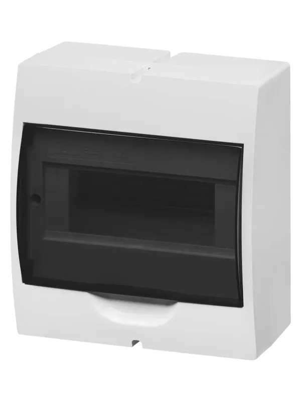 / Щит ЩРН-П-8 модулей, навесной, пластик, белый, дымчатая дверца, без шин, IP41 TDM