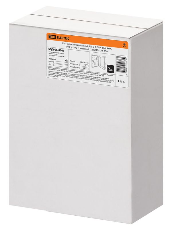 Щит учета антивандальный, ЩУ-0-1, GRP, IP65, IK09 ,-50 С до +70 С, навесной, (320х210х130) TDM – ООО «Эмсилайт»