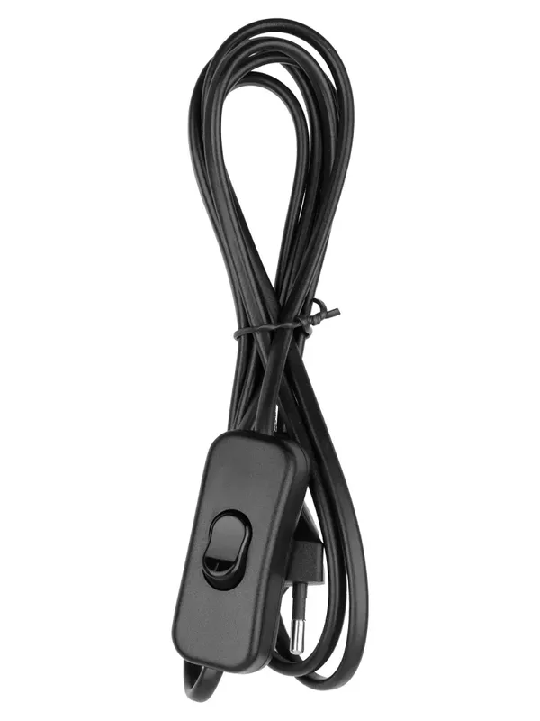 Шнур для БРА с выключателем ШВВП-ВП 2х0,5 мм2 1,8 м 600 Вт черный TDM