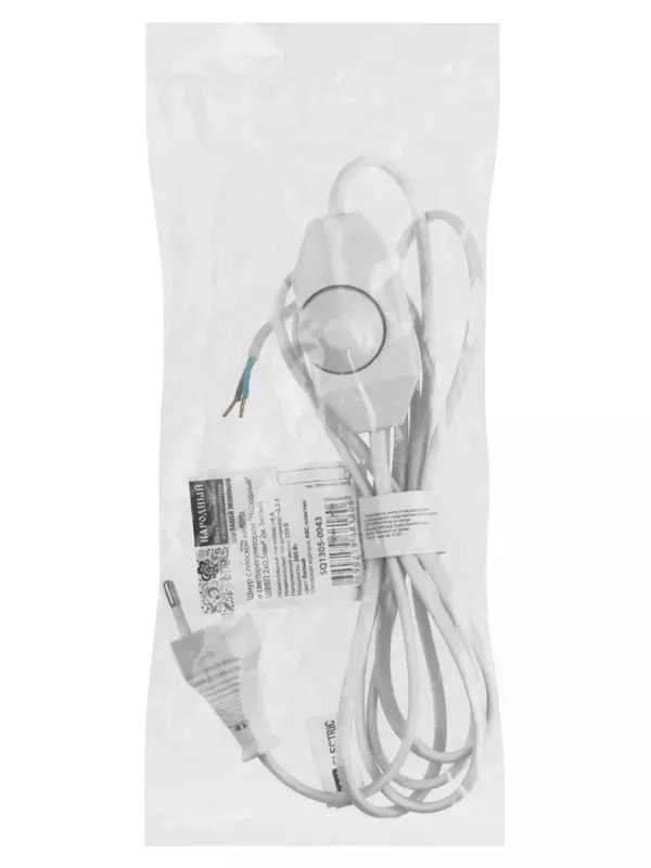 / Шнур с плоской вилкой и светорегулятором «Народный» ШВВП 2х0,5 мм2, 2м, белый