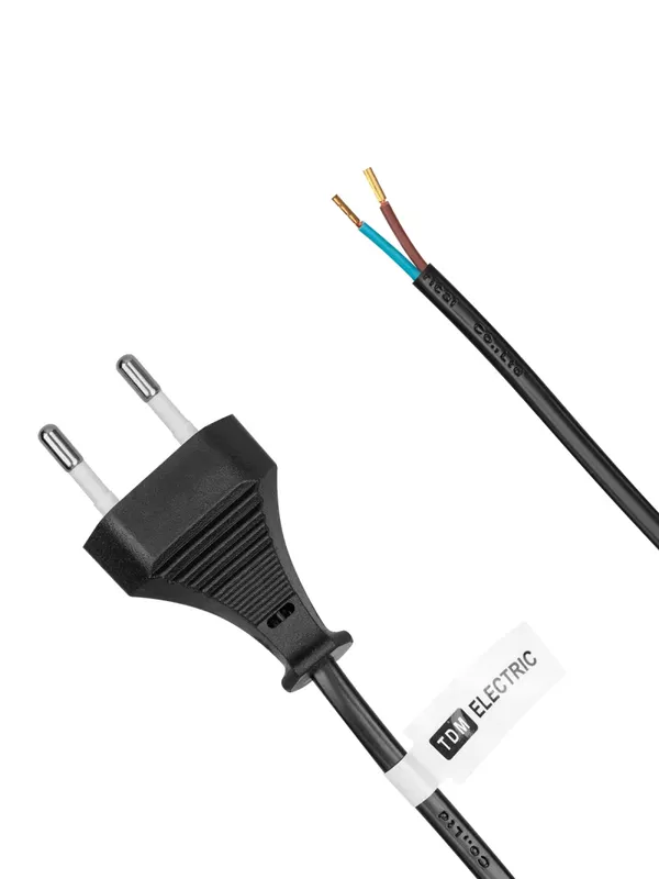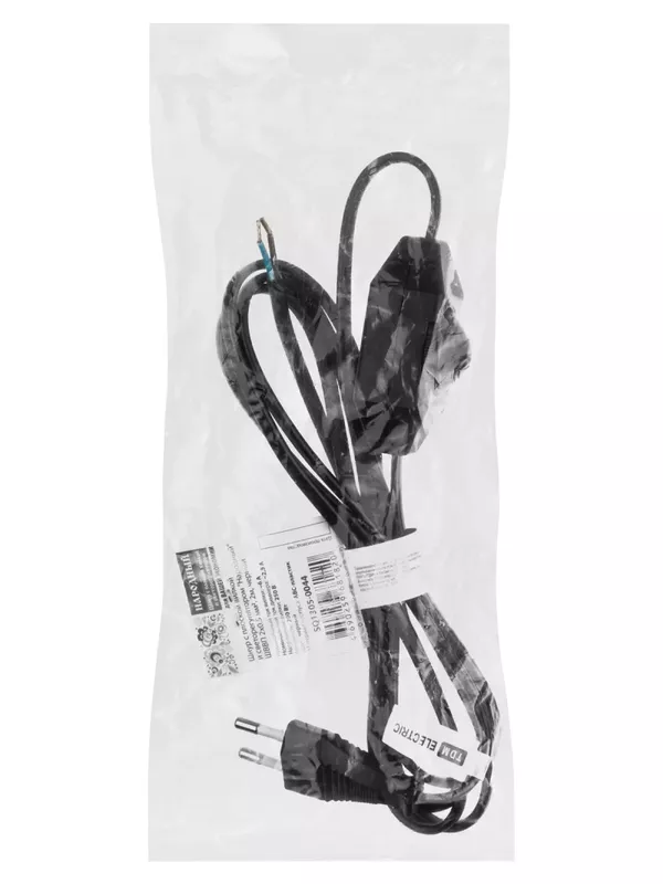 / Шнур с плоской вилкой и светорегулятором «Народный» ШВВП 2х0,5 мм2, 2м, черный