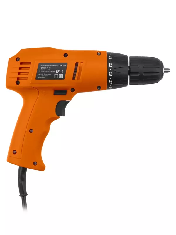 Шуруповерт сетевой СШ-280, 280 Вт, 12.5 Нм, БЗП, шнур 3 м, «Рубин» TDM