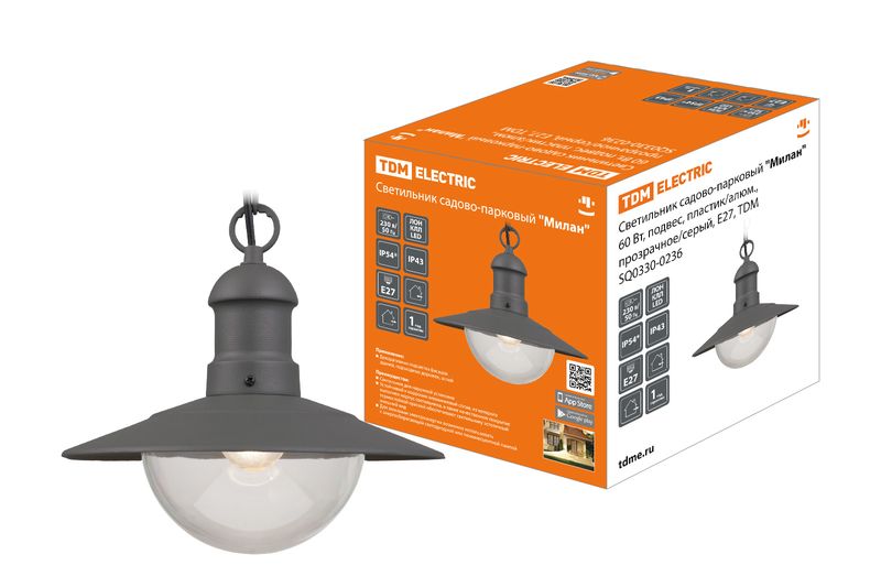 "Светильник садово-парковый ""Милан"" 60 Вт, подвес, пластик/алюм., прозрачное/серый, Е27, TDM" SQ0330-0236 – ООО «Эмсилайт»