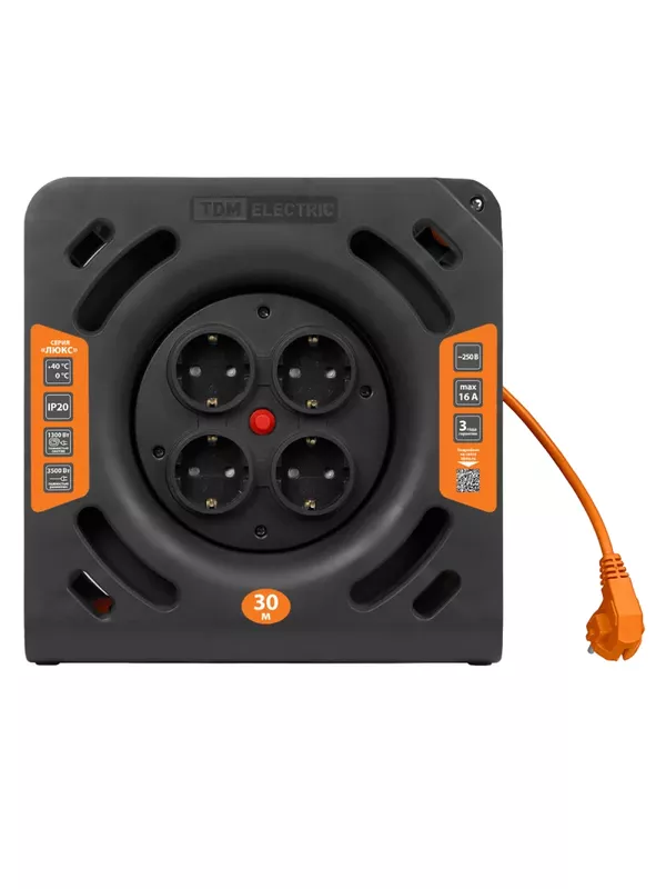 Удлинитель силовой на катушке ЛЮКС УКз16-004 (4 места/30м ПВС 3х1,5) TDM УС1-43131 (УС1 430 1101)