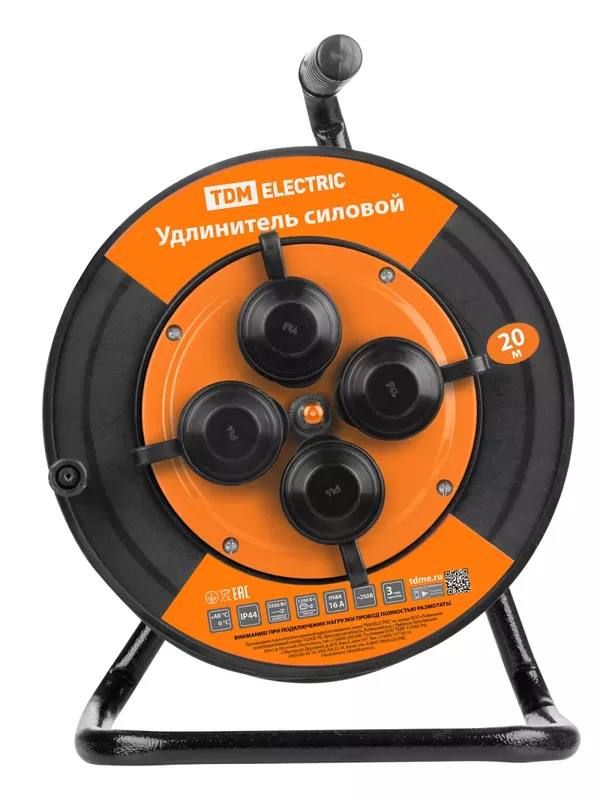 Удлинитель силовой УКз16-004 TDM (IP44 4 места/20м КГТП-ХЛ 3х1,5 пласт. катушка) УС1-43128
