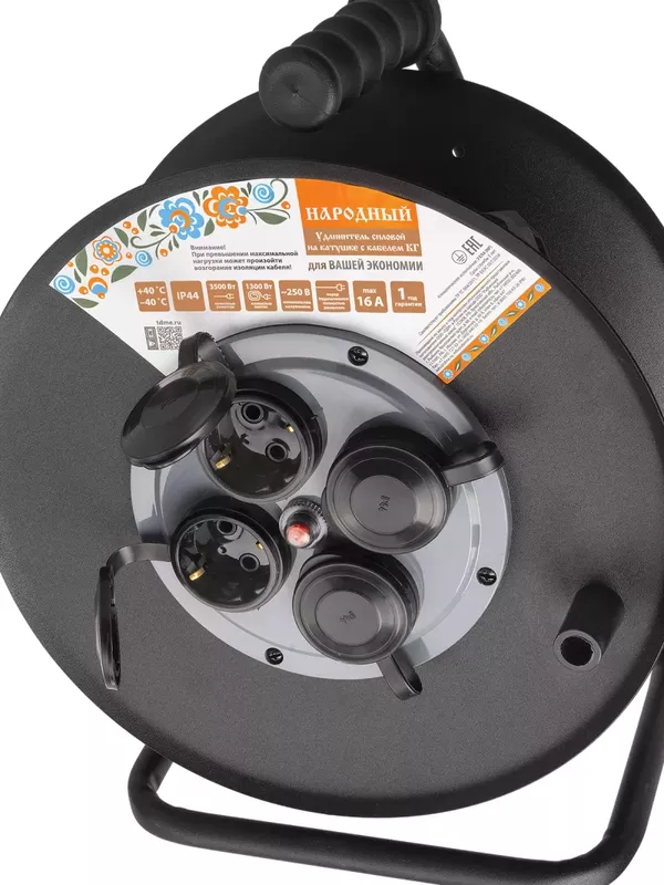 / Удлинитель силовой УХз16-004 (метал. катушка, А3, 4 места IP44/20 м КГ 3500 Вт) Народный УС1-43128