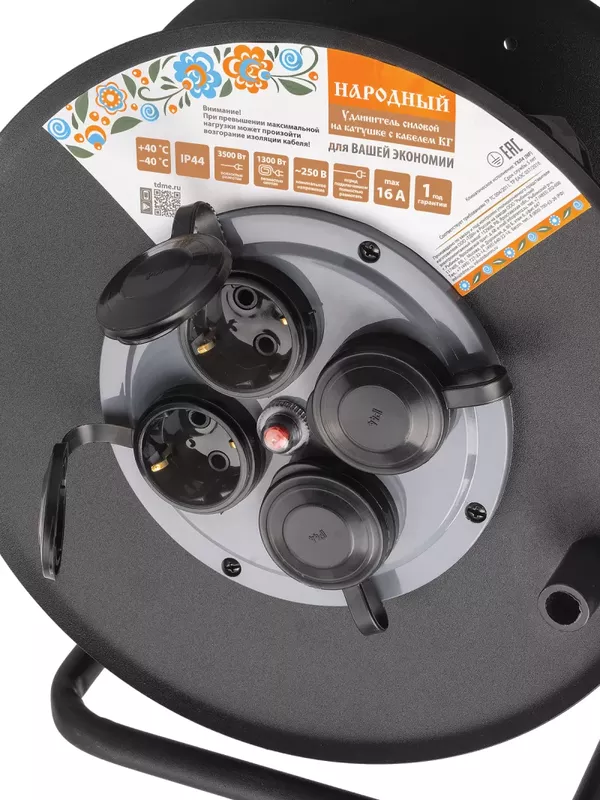 Удлинитель силовой УХз16-004 (метал. катушка, А3, 4 места IP44/40 м КГ 3500 Вт) Народный УС1-43128 – ООО «Эмсилайт»
