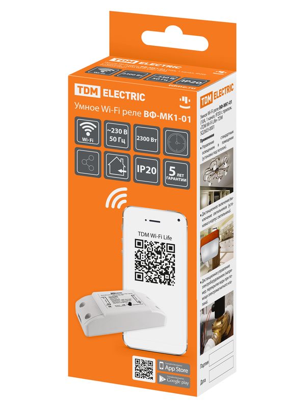 / Умное Wi-Fi реле ВФ-МК1-01 (10 А, 1 канал, IP20) TDM